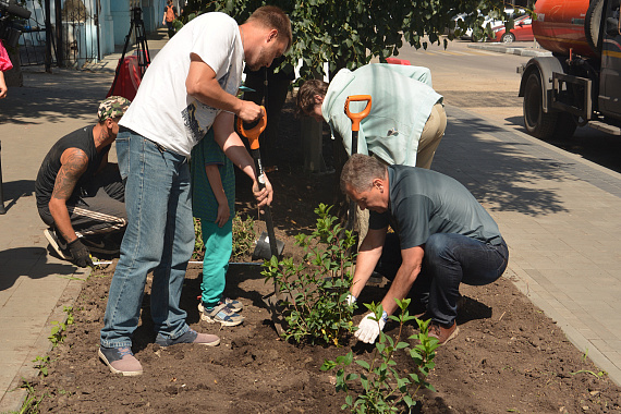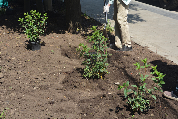 В администрации пошли навстречу инициативе и предложили для подобных работ участок улицы, возле дома № 22. Константин Григорьевич вместе с активистами приехал к дому и принял участие в посадке полусотни кустов гортензии. Растение было выбрано по совету специалистов.