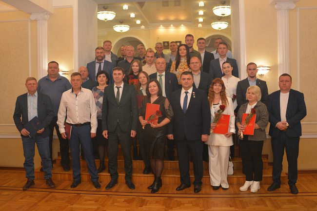 Председатель Воронежской городской Думы Андрей Дьяченко совместно с главой городского округа город Воронеж Сергеем Петриным наградил лучших работников дорожного хозяйства.