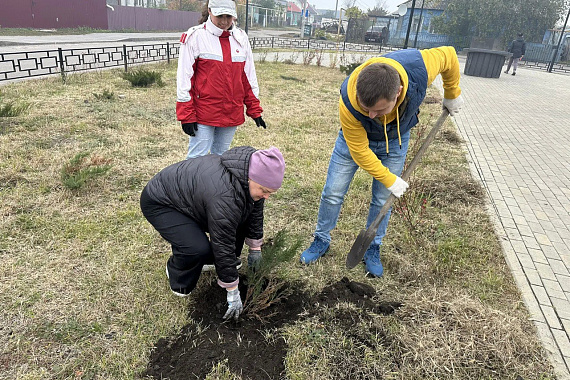 Депутаты Советского района Андрей Бойко и Сергей Крючков высадили деревья на Шиловском плацдарме.