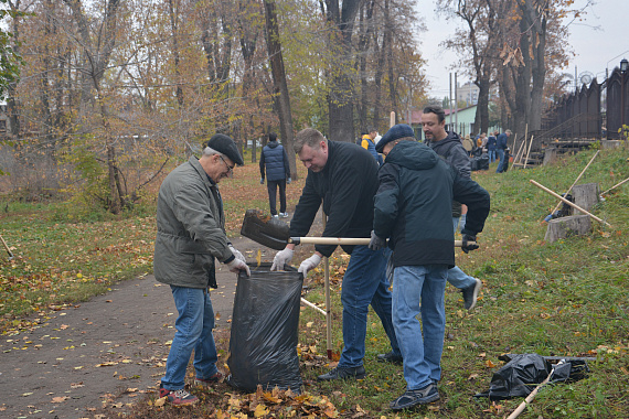 Председатель Воронежской городской Думы Андрей Дьяченко принял участие в субботнике вместе с сотрудниками Воронежской городской Думы и сотрудниками различных подразделений Правительства области и мэрии в Бринкманском парке.
