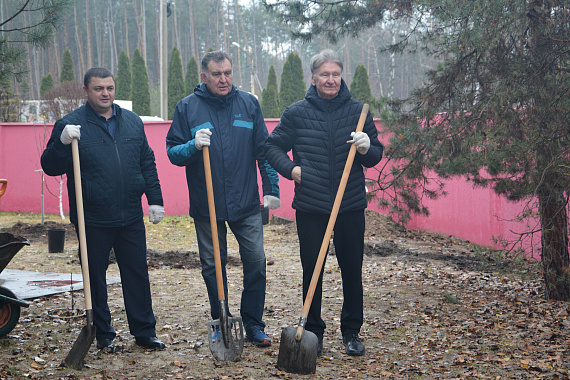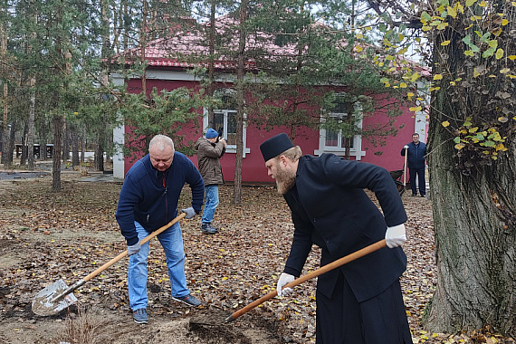 Депутаты Воронежской городской Думы во главе с председателем Андреем Дьяченко высадили саженцы плодовых деревьев и кустарников на территории Храма во имя великомученика и целителя Пантелеймона в микрорайоне «Больница «Электроника».