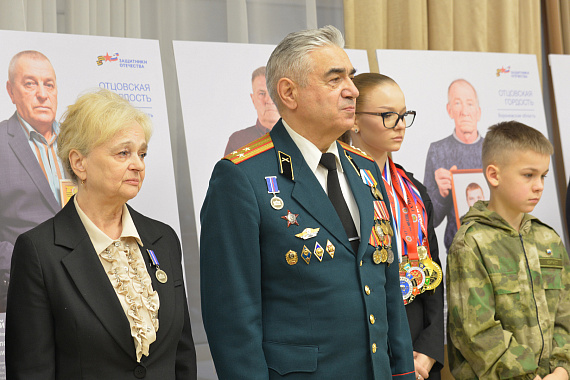 В рамках патриотического проекта в пресс-центре облДумы открылись сразу две фото-выставки: «Семья Героя» и «Отцовская гордость». Инициаторами стали родители погибшего в зоне проведения специальной военной операции офицера Ильи Степанова. В холле, перед залом заседаний выставлены портреты отцов, не дождавшихся с поля боя своих сыновей. И те, кто их дождался.