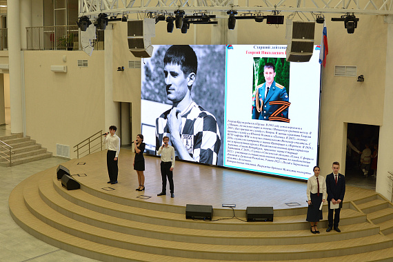 В воронежской Мега-школе состоялось масштабное празднование Дня героев Отечества. В качестве почетных гостей ребята пригласили настоящих героев нашего времени - председателя Воронежской городской Думы, Героя России Андрея Дьяченко, депутата горДумы, ветерана боевых действий Михаила Гамбурга, депутата областной Думы, кавалера трёх орденов Мужества и четырёх медалей за отвагу Александра Воронцова, участника боевых действий в Афганистане Станислава Иониса, ветерана боевых действий Евгения Иваненко, председателя Союза советских офицеров Железнодорожного района Валентина Исаева. Особое внимание было уделено родственникам павших героев – ребята вручили цветы ветерану боевых действий Николаю Филипову, отцу воронежского летчика-героя Романа Филипова, а также Ирине Сумароковой и Анфисе Бондаревой, чьи мужья погибли в ходе выполнения служебных задач на СВО.