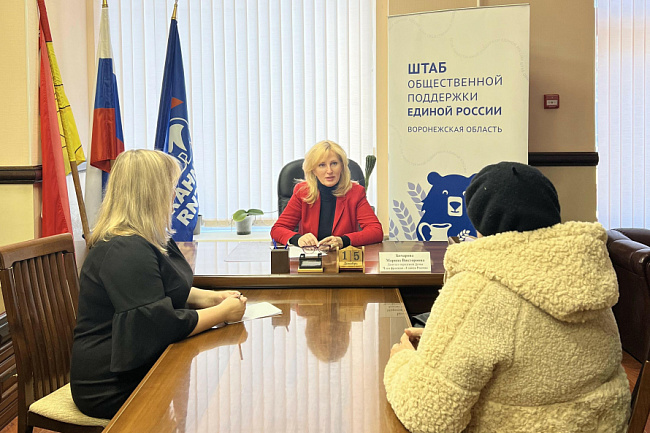 В региональной общественной приемной председателя партии «ЕДИНАЯ РОССИЯ» Д.А. Медведева прошел личный прием депутата Воронежской городской Думы Марины Бочаровой.