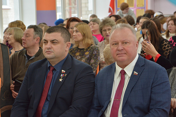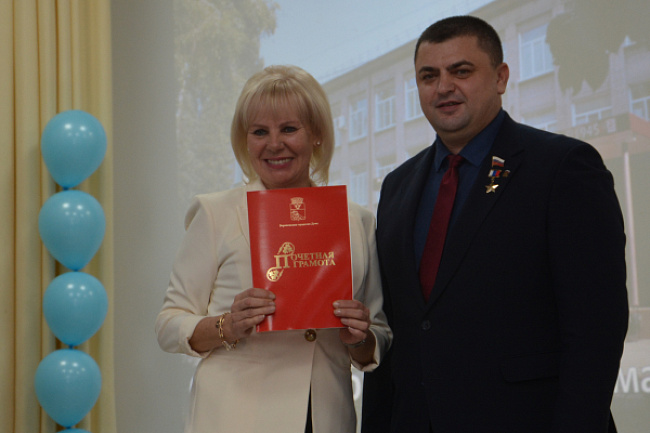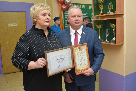 Заместитель председателя городской Думы Олег Черкасов подчеркнул, что постоянно оказывает поддержку школе, так как она расположена на его округе. Он вручил директору Ирины Париновой от себя лично и от депутата Воронежской областной Думы Владимира Верзилина два сертификата по 200 тысяч рублей на приобретение оборудования.