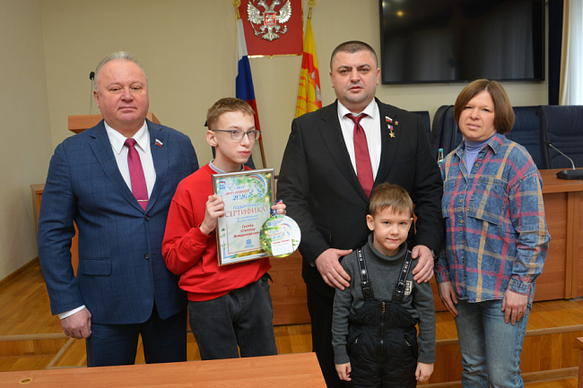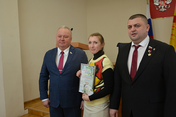 Сегодня председатель Воронежской городской Думы, Герой России Андрей Дьяченко и его заместитель Олег Черкасов в городском парламенте вручили подарочные сертификаты на приобретение формы спасателя, световой доски, эллиптического тренажера и беговых дорожек.