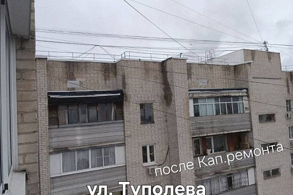 Первый случай касался ремонта крыши многоквартирного дома по улице Туполева. Несмотря на проведенную работу, подрядчик не установил сливы и оставил огромное число порезов и вздутий. Жители с ужасом наблюдают как в результате дождей и оттепели начинал сыреть и разрушаться их фасад. Претензионная работа с подрядчиком велась всю осень, но проблема так и осталась нерешенной. При поддержке депутата жители пойдут в суд. Проведена необходима подготовительная работа и Фонд капитального ремонта также подтвердил готовность подачи иска.