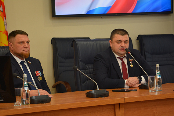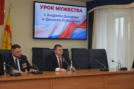 Председатель Воронежской городской Думы, Герой России Андрей Дьяченко совместно с депутатом Воронежской областной Думы, кавалером ордена Мужества, участником программы «Герои земли Воронежской» Денисом Рубащенко провел Урок Мужества для шести юнармейских отрядов.