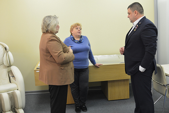 Елена Ивановна рассказала о деятельности организации, познакомила с социальными координаторами, сотрудниками медэкспертизы, психологом, показала помещения для психологической разгрузки, детскую комнату, в случае, если посетители приходят с детьми, гостиную, конференц-зал, помещение со специальным оборудованием для людей с ограниченными возможностями и другие помещения фонда, где созданы все условия для оказания помощи участникам СВО и их семьям.