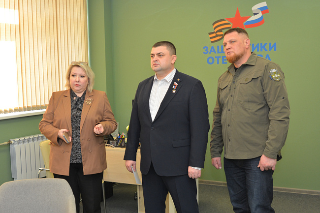Председатель Воронежской городской Думы, Герой России Андрей Дьяченко и депутат Воронежской областной Думы Денис Рубащенко встретились с руководителем Воронежского отделения фонда «Защитники Отечества» Еленой Коровкиной.