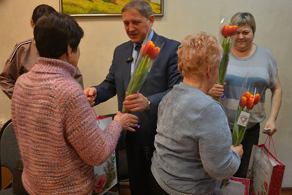 Накануне Международного женского дня заместитель председателя городской Думы Андрей Соболев поздравил тех, кого в этот праздник не смогут поздравить их сыновья.