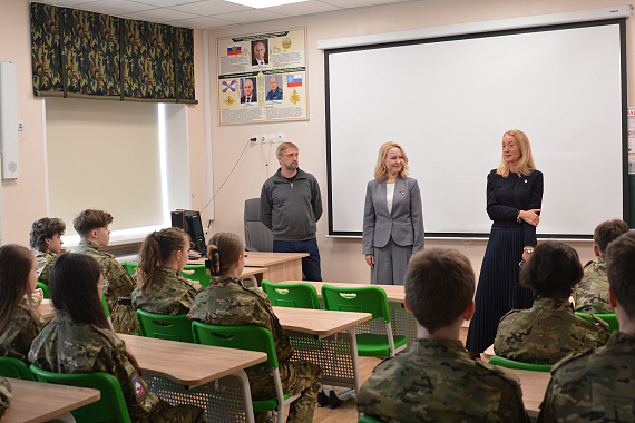 Затем для Юлии Поповой провели экскурсию по гимназии. Наталья Панина с гордостью рассказала про уникальную идею, реализованную в школе – каждому кабинету присвоено имя выдающегося воронежца. Например, кабинет ОБЗР носит имя знаменитого ученого, инженера, космонавта Константина Феоктистова. Юлия Попова посетила урок, пообщалась с учениками и с радостью ответила на все интересующие их вопросы.