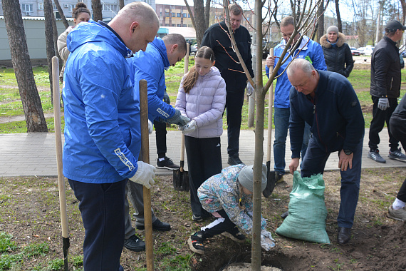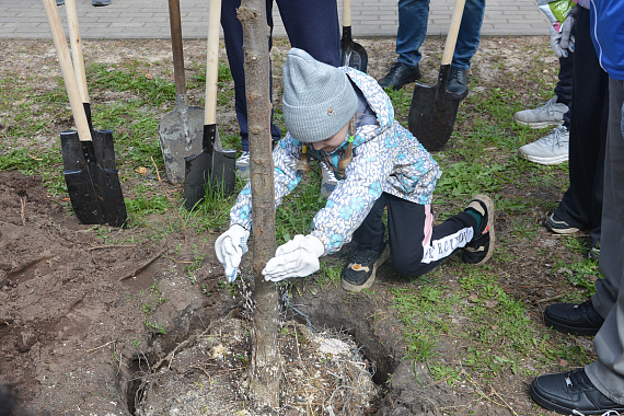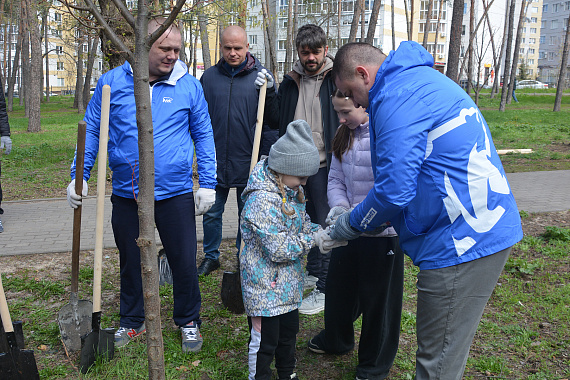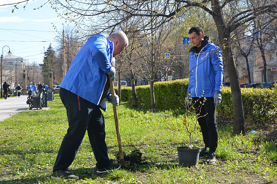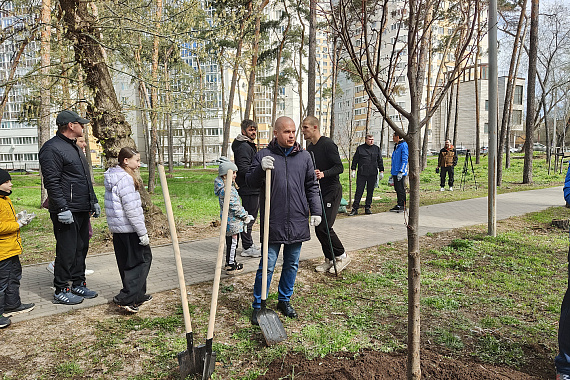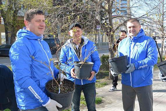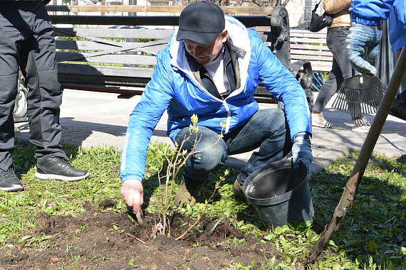Затем Андрей Дьяченко отправился на субботник в сквер Спортивный, расположенный в Железнодорожном районе. К спикеру присоединились Олег Черкасов, Алексей Панфилов, Валерий Данилов, Иван Кандыбин и Александр Чуфинев. Вместе с жителями окрестных домов депутаты высадили саженцы деревьев - 12 лип и 5 рябин. Местные жители пришли на субботник целыми семьями, особенно отличились две маленькие помощницы – Аня и Катя – которые активно помогали председателю горДумы ухаживать за саженцами.